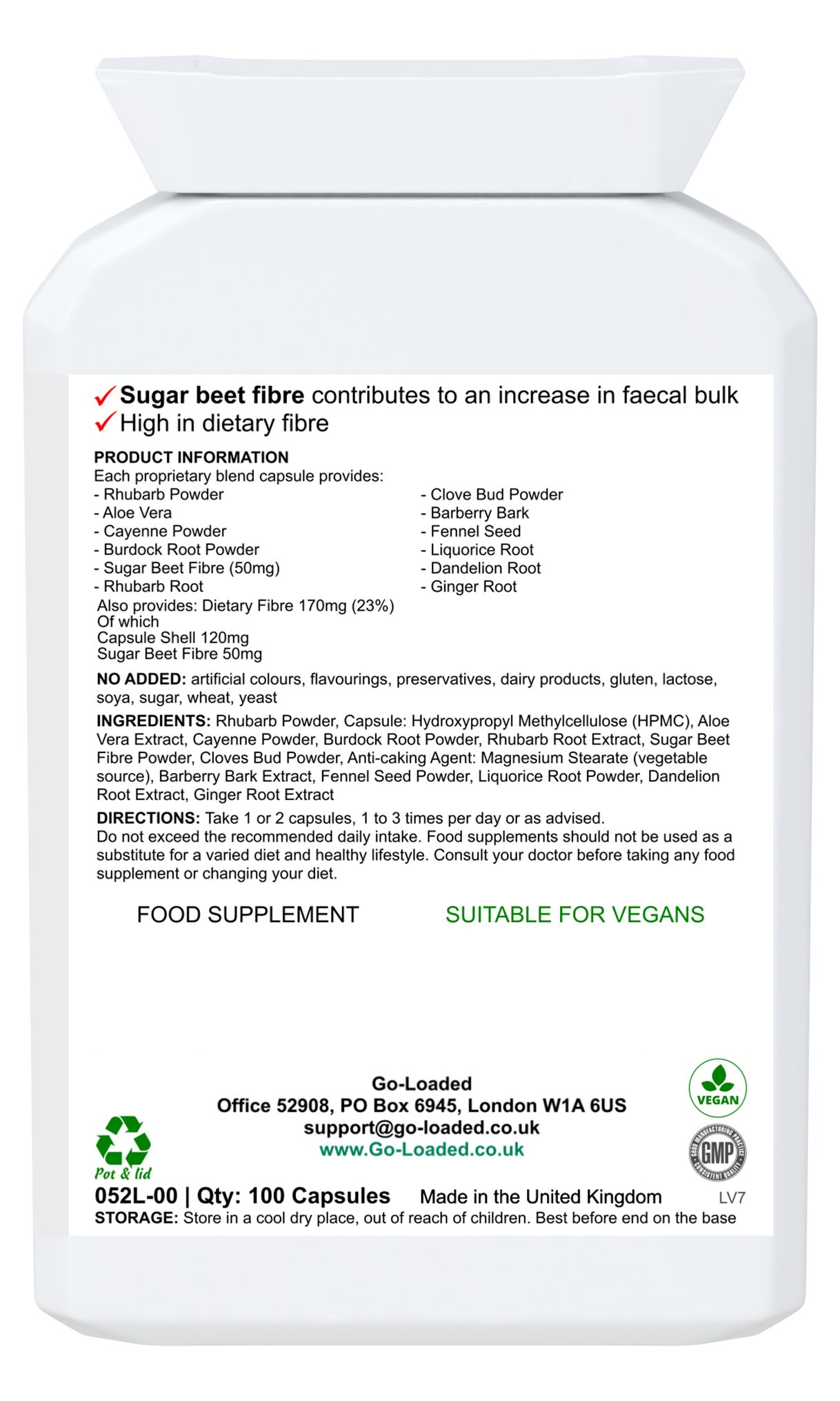 The sugar beet fibre in this formula, in particular, contributes to an increase in faecal bulk in two ways: the insoluble components of the fibre increase faecal bulk by absorbing water in the large intestine, while the soluble components are fermented by bacteria in the large intestine leading to an increase in bacterial mass. As such, this source of fibre may have a beneficial physiological effect for people who want to improve or maintain normal bowel function.